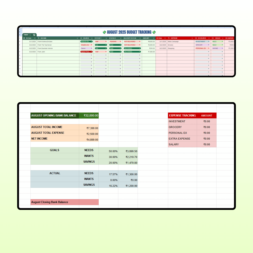 This 2025 Updated Budget Tracker Sheet is your ultimate money management tool. Whether you’re a freelancer, agency owner, startup founder, digital marketer, or corporate employee — this sheet helps you track every rupee with clarity and control.