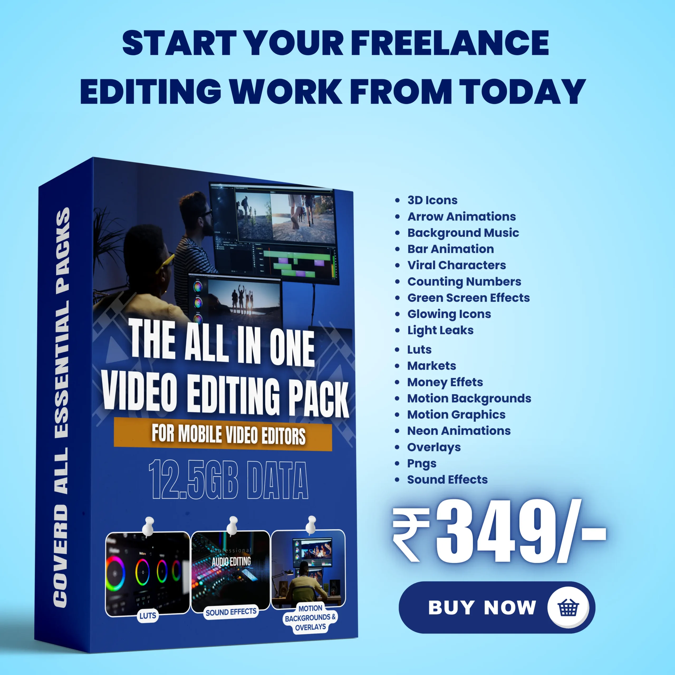 This isn’t just a pack — it’s your complete toolkit to create viral, cinematic, and professional-grade videos right from your phone. Whether you’re a beginner, freelancer, or content creator, this 12.5GB All-in-One Video Editing Pack gives you everything you need to level up your edits and start earning.